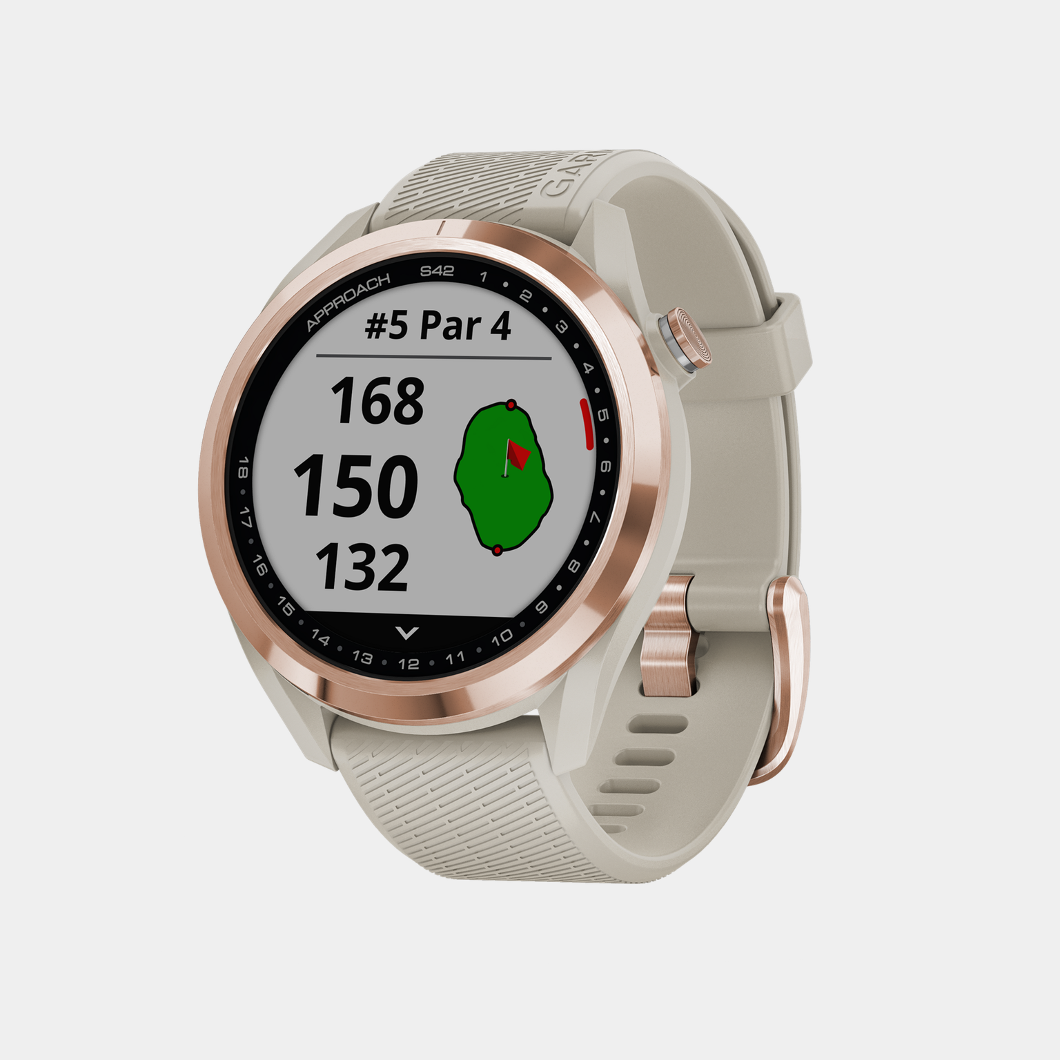 Approach S42, er en GPS-smartklokke som gir deg informasjon fra mer enn 42.000 internasjonale golfbaner, rett på håndleddet ditt. GreenView-funksjonen gjør at du kan plassere flagget manuelt. Det gir rask oversikt over avstanden til forkant, senter og bakkant av green, samt hindre og doglegs.