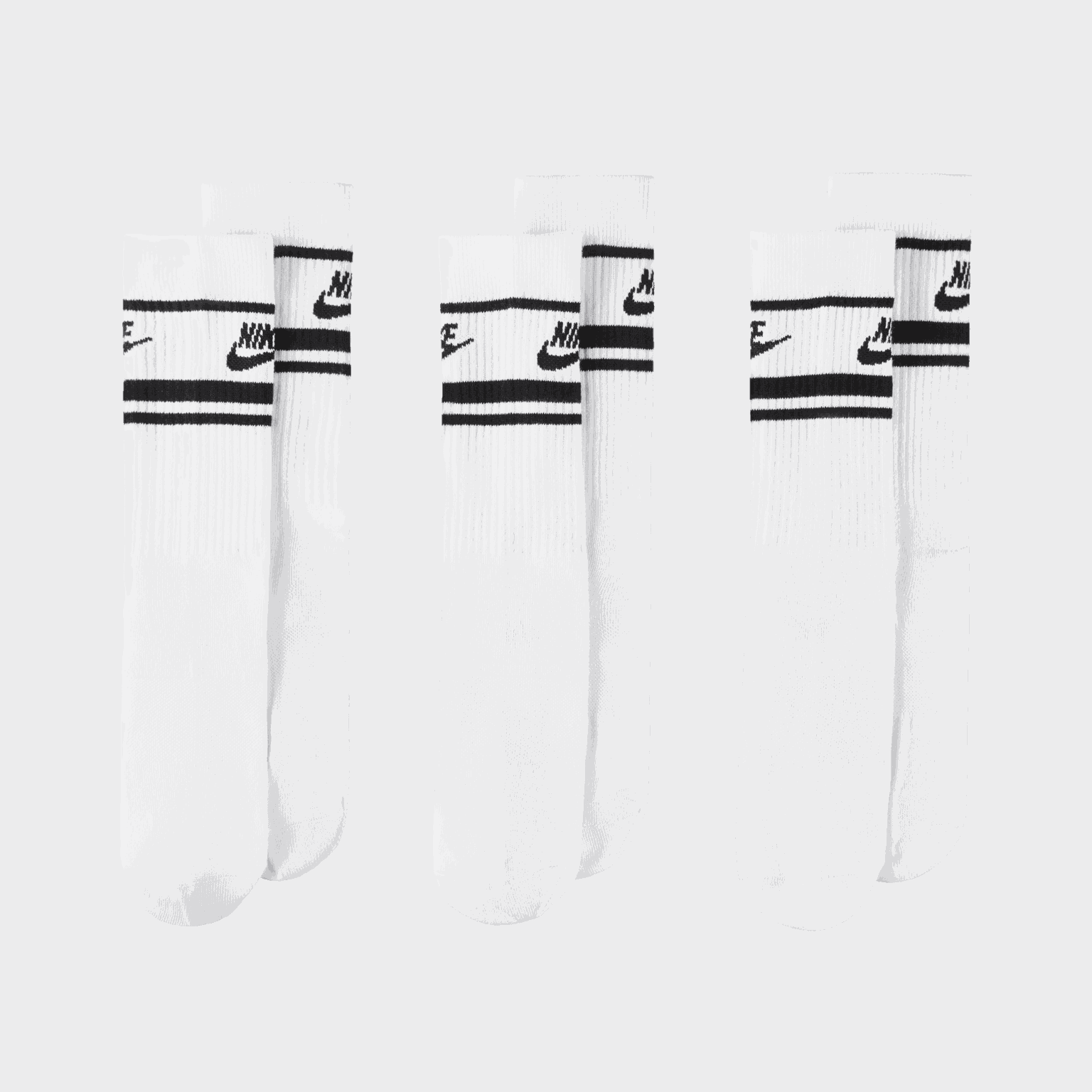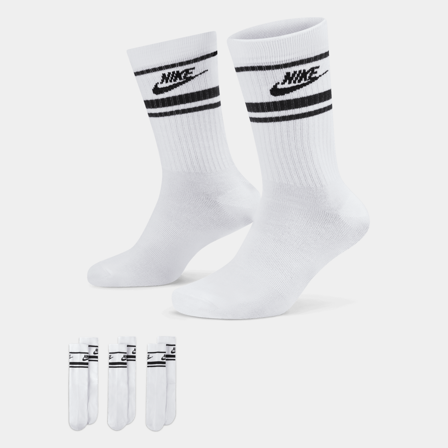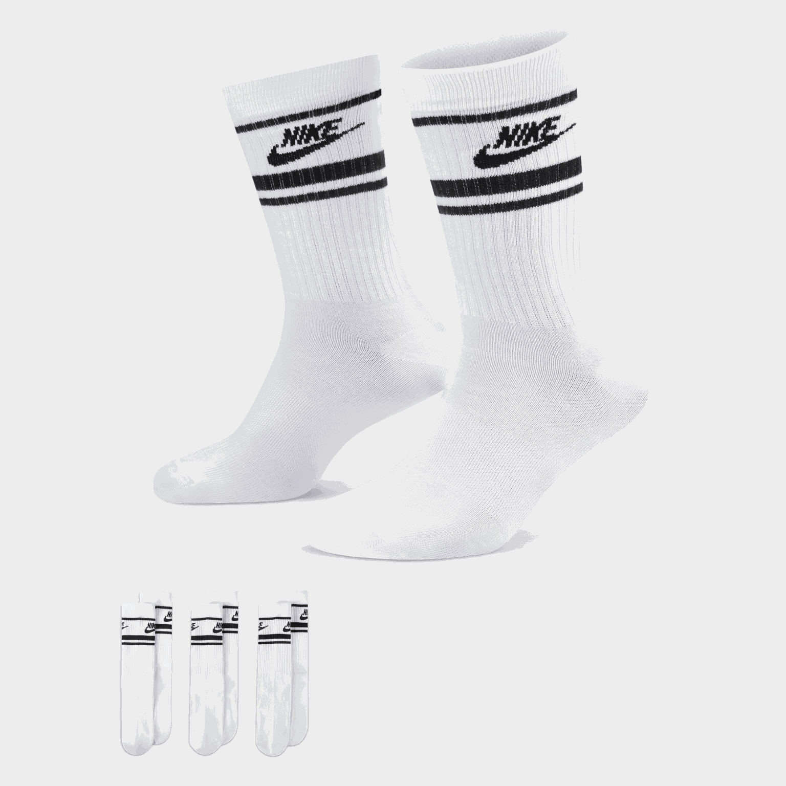 Nike Sportswear Everyday Essential Socks passer fint til både hverdags og trening. Nike Dri-FIT-teknologi transporterer fukt vekk fra huden som sørger for at fukten fordamper raskere, og du holder deg tørr og komfortabel.